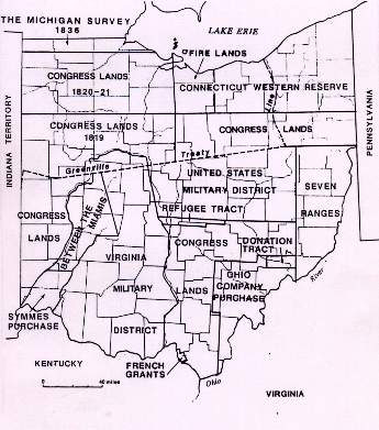 After the American Revolution, when the Eastern seaboard states were ceding their western lands to the national public domain, the state of Connecticut managed to keep a piece of her original sea-to-sea charter claim about the size of the mother state. Connecticut's "Western Reserve" was legally defined as a rectangle running between her extended northern and southern boundaries north latitudes: 42 degrees 2 minutes (the International Line) and 41 degrees for 120 miles west from the western boundary of Pennsylvania.